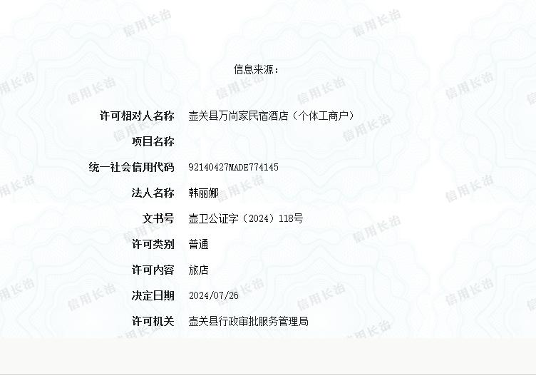 標題壺關縣萬尚家民宿酒店(個體工商戶)