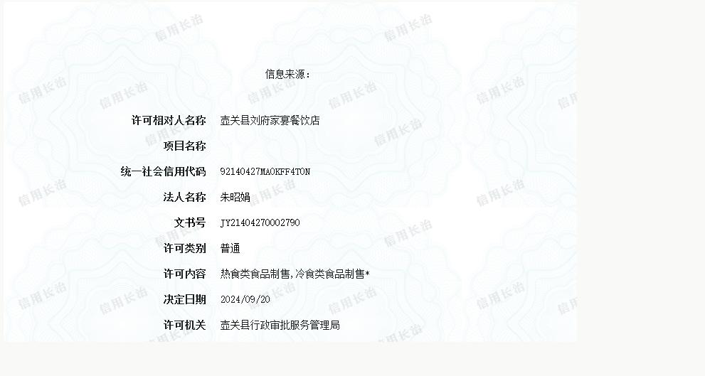 壺關縣劉府家宴餐飲店