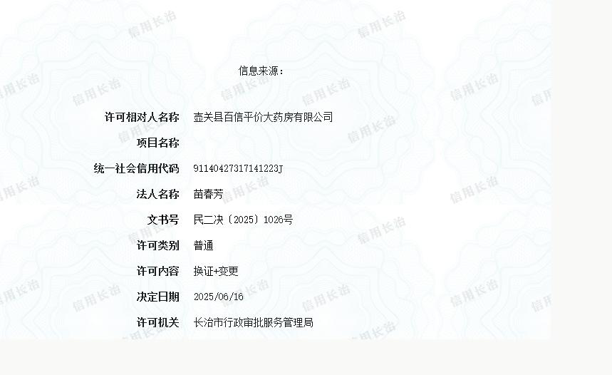 標題壺關縣百信平價大藥房有限公司