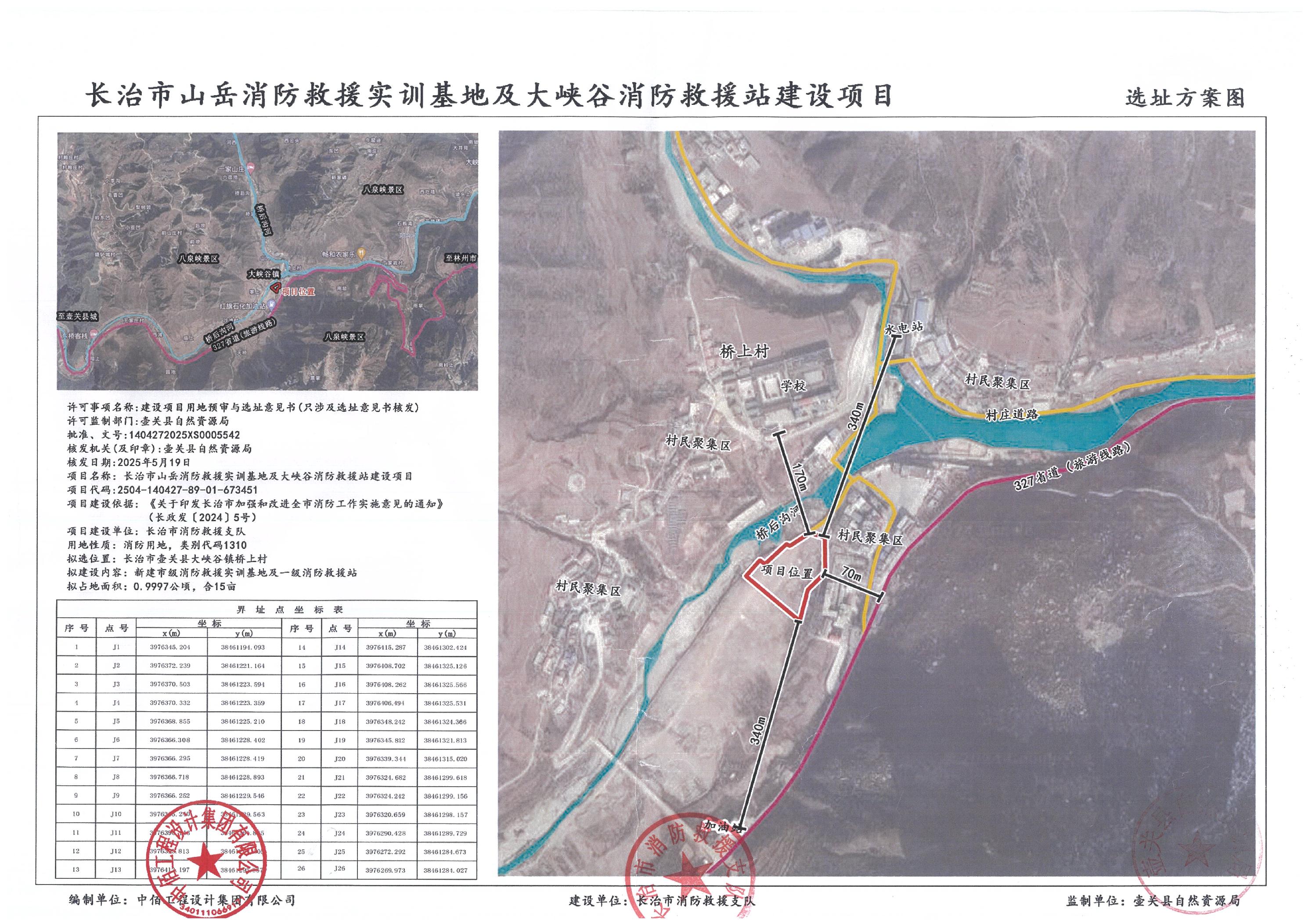 標題長治市山岳消防救援實訓基地及大峽谷消防救援站建設項目用地預審與選址意見書 選址方案圖