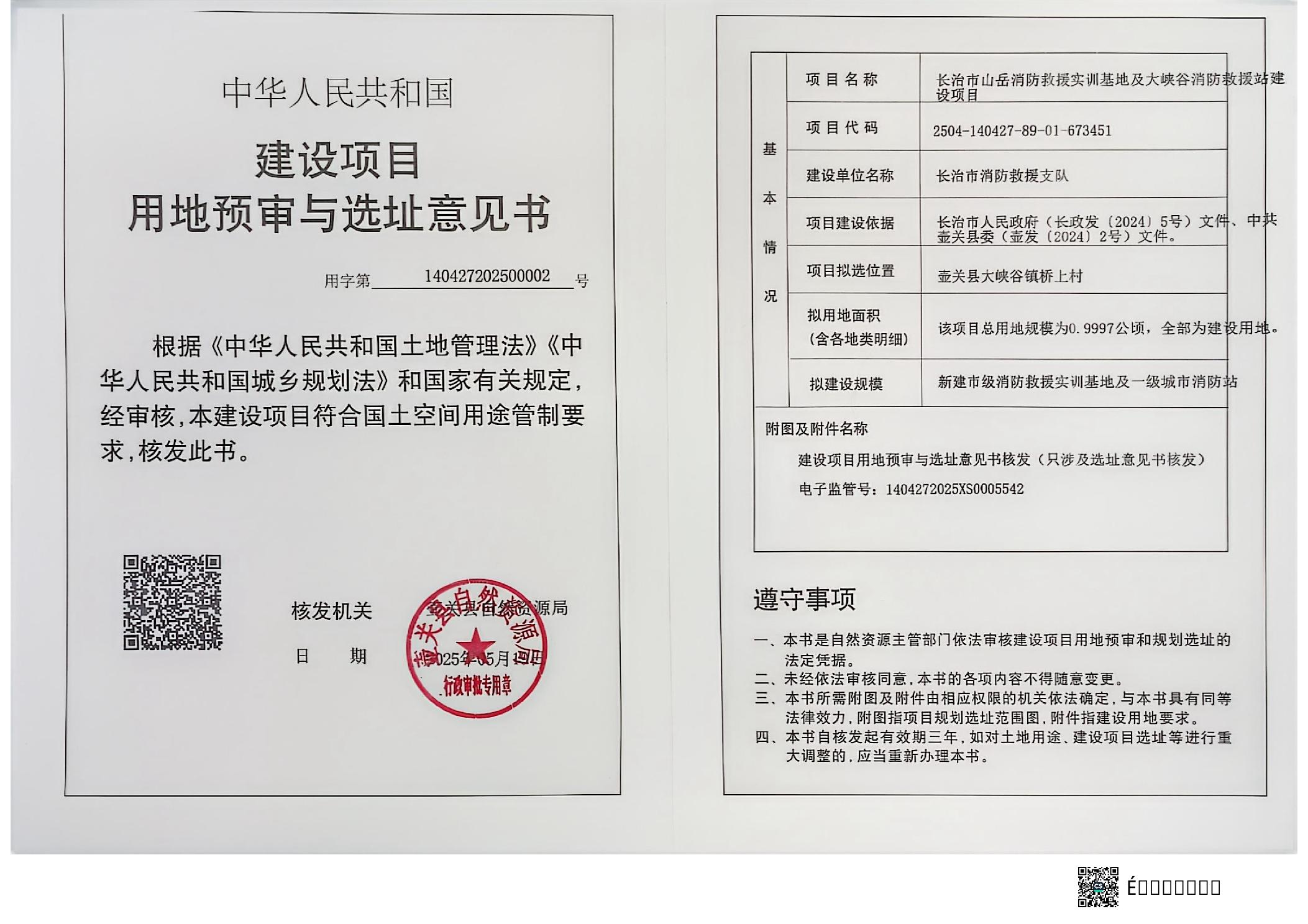 長治市山岳消防救援實訓基地及大峽谷消防救援站建設項目用地預審與選址意見書 選址方案圖