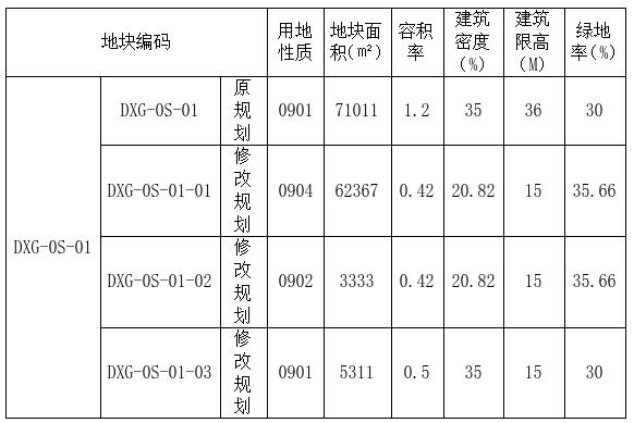 本次控制性詳細規劃調整將DXG-QS-01地塊進行劃分修改,將原規劃DXG-QS-01地塊修改為DXG-QS-01-01地塊、DXG-QS-01-02地塊、DXG-QS-01-03地塊。