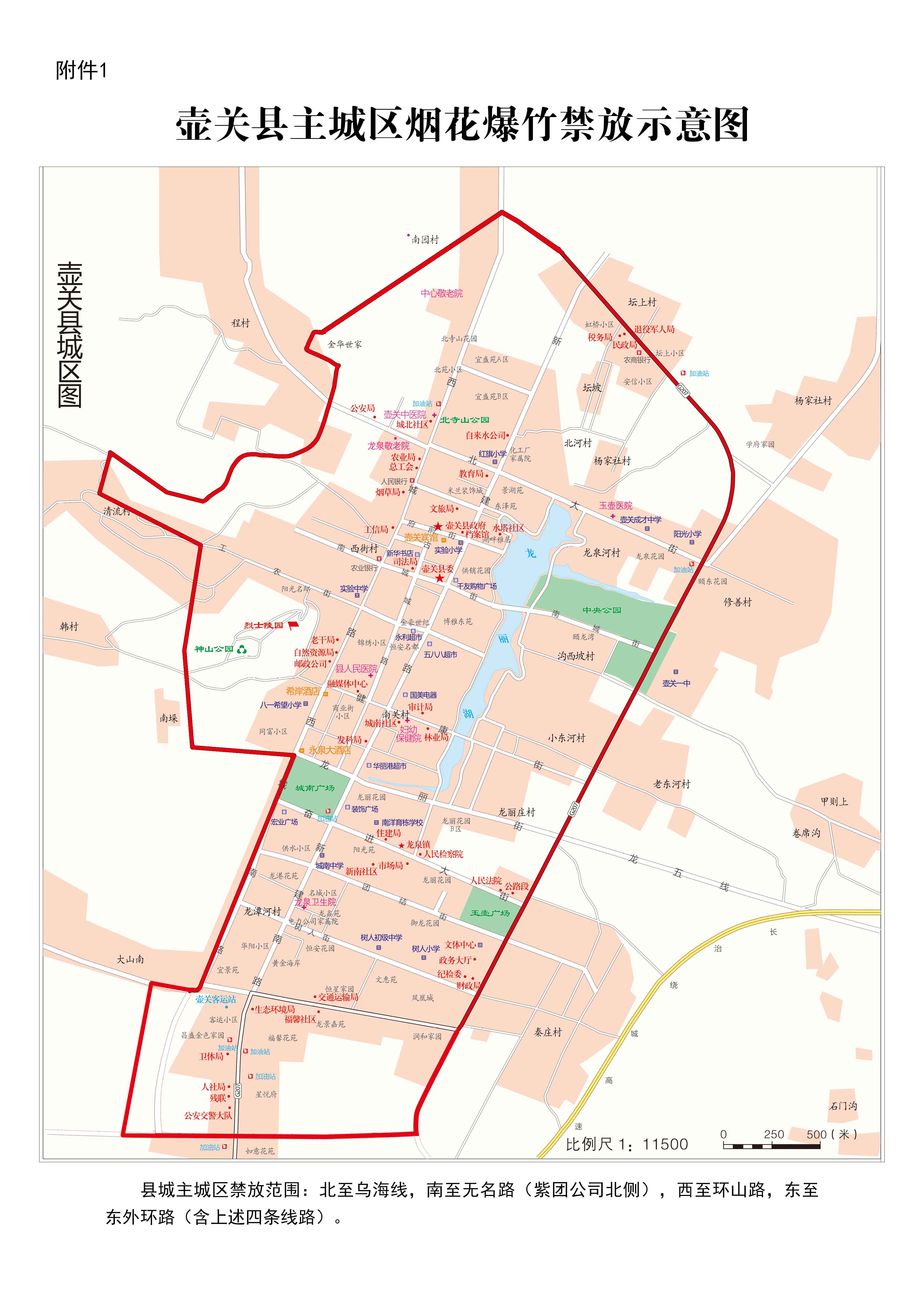 1.縣城主城區禁放范圍:北至烏海線,南至無名路(紫團公司北側),西至環山路,東至東外環路(含上述四條線路)。